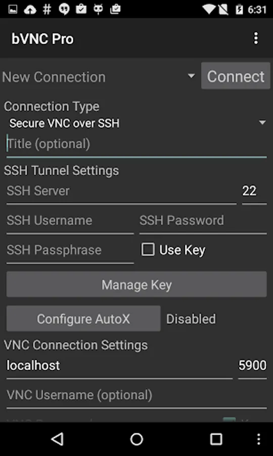 - SSH tunneling, AnonTLS and VeNCrypt for secure connections (does not support RealVNC encryption).