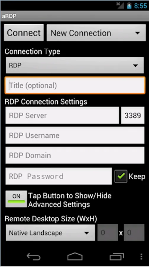 Please support my work and GPL open-source software by buying the donation version of this program called aRDP Pro!