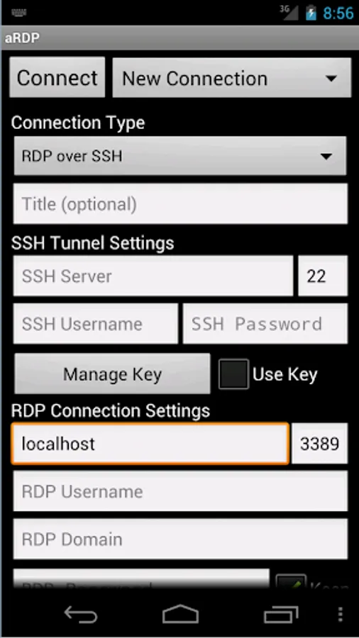 aRDP is a secure, SSH capable, open source Remote Desktop Protocol client that uses the excellent FreeRDP library and parts of aFreeRDP. Its features include: