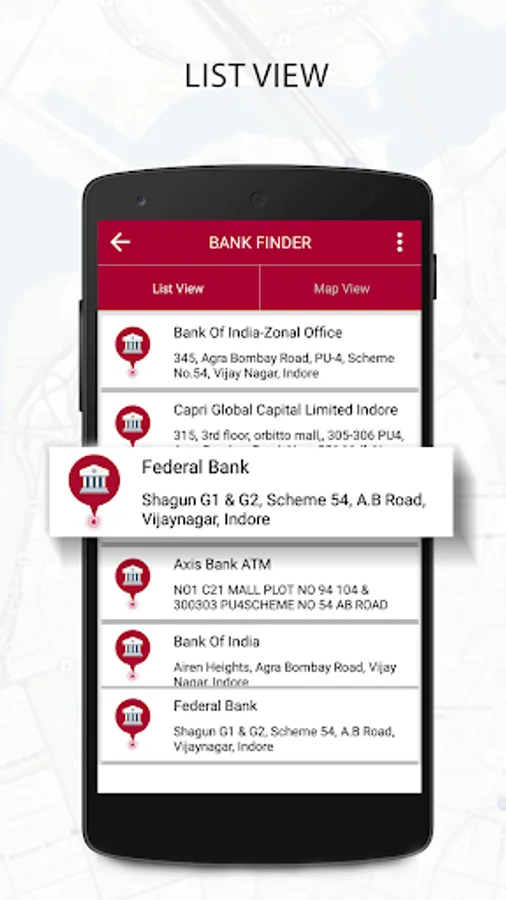 Bank Finder will show you Banks in Listview and Mapview.