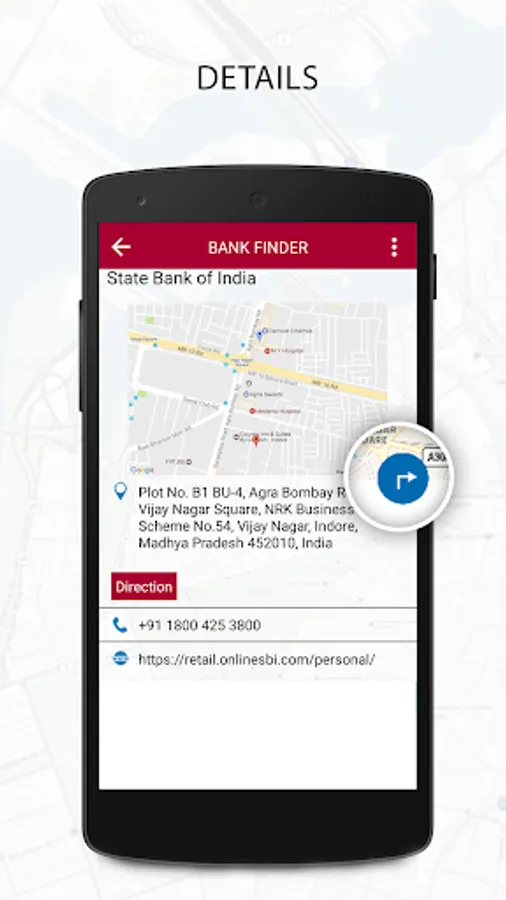 Bank Finder provide you Bank details like address, geo location and even directions to reach there.