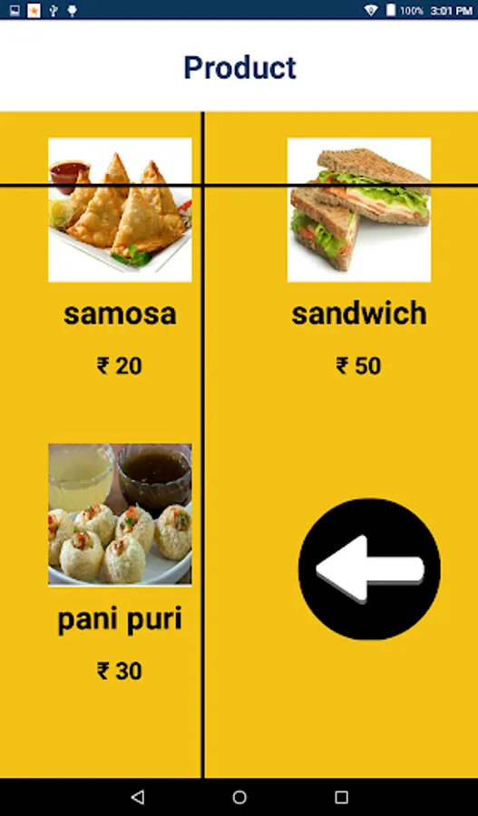 • Products under categories entered appear in easy to navigate modes.The product can be added to the bill along with the quantity of purchase.