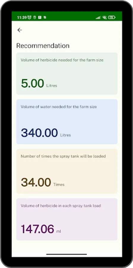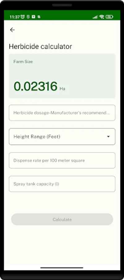 Herbicide Calculator: Uses land measurements and pre-set parameters to determine the correct herbicide quantity.