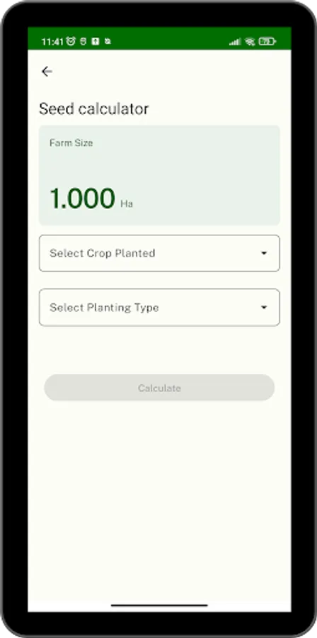 Seed Calculator: Calculates seed requirements for seven crops (cassava, yam, rice, sweet potato, cowpea, maize, and soybeans) based on land size and planting type, assuming 100% germination.