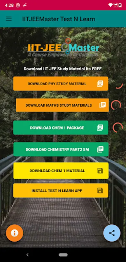 Download IIT JEE Notes, JEE Test, JEE Books, Question and Problems. Mains Advanced study material books, IIT JEE Notes, share them with others. It downloads files in the download folder of the device. It covers Physics, Chemistry mathematics for classes 11 and 12. Topics covered are mechanics, wave shm, thermodynamics, Optics modern physics notes, and general properties of matter. Electricity magnetism, organic chemistry, physics chemistry, and more. Algebra calculus and trigonometry are covered in maths for iit jee preparation. Each topic is covered in four parts with the best care of errors.