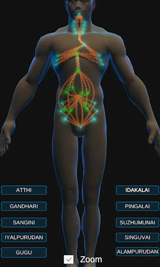 This tutor shows the roadmap of each of the ten meridians in the Varma system of medicine. The roadmap includes the origin, entire pathways, and the ending labelled with landmarks as in Varma literature.