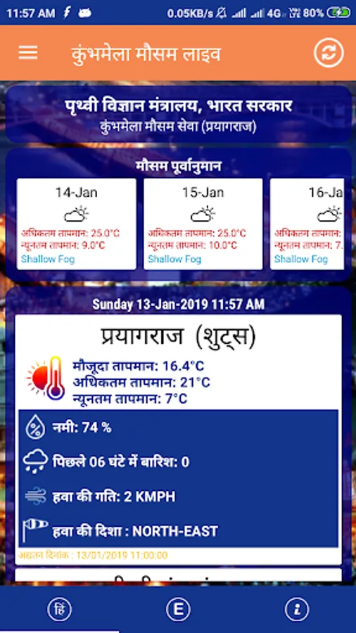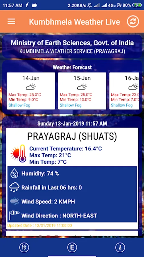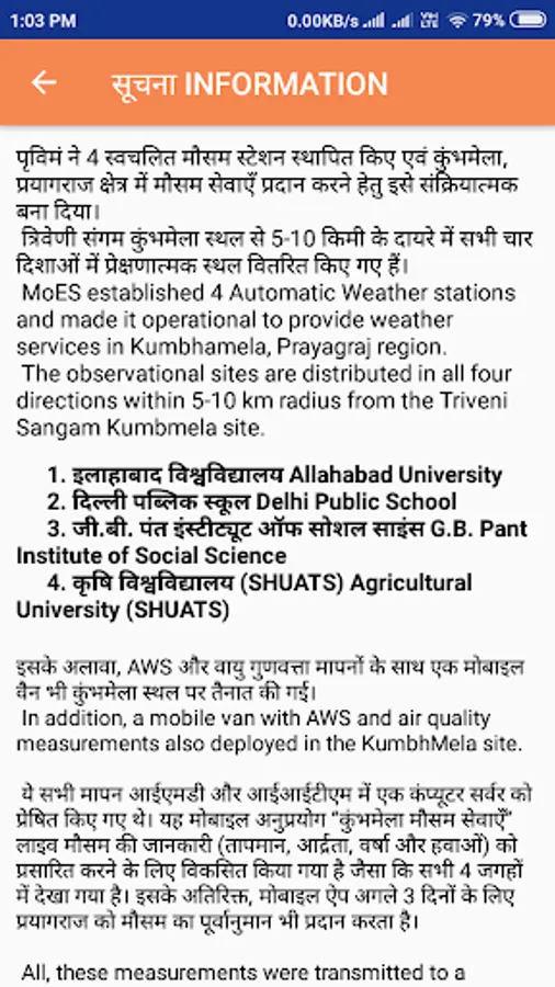 This mobile application "Kumbamela Weather Service" is developed to disseminate