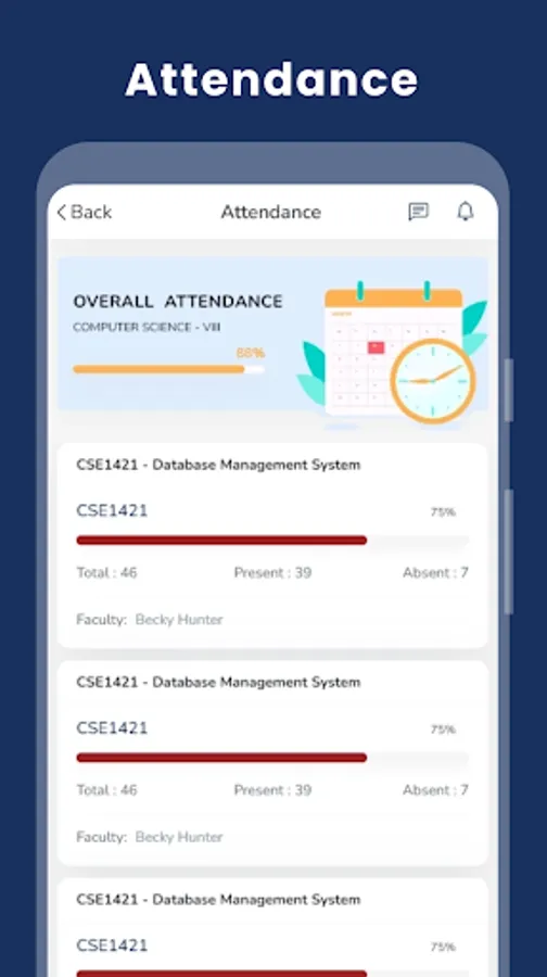 The students can check their results, fees status, and other information in the system. Further, faculty members can apply for leaves, maintain the service book, mark students’ attendance, and collect payslips on the application itself.