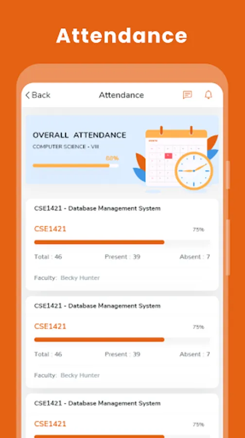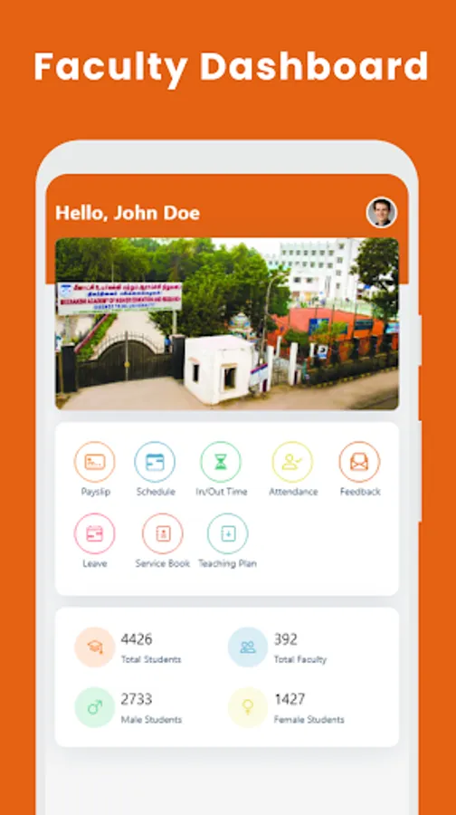 The students can check their results, fees status, and other information in the system. Further, faculty members can apply for leaves, maintain the service book, mark students’ attendance, and collect payslips on the application itself.