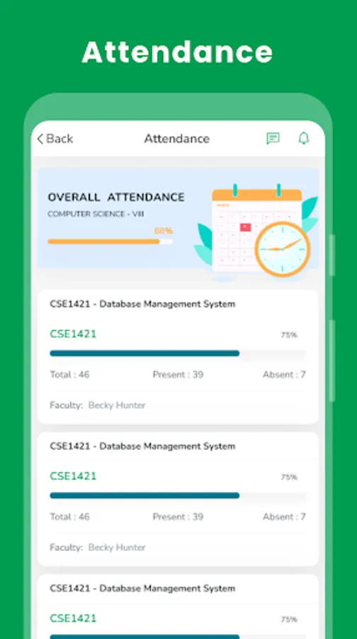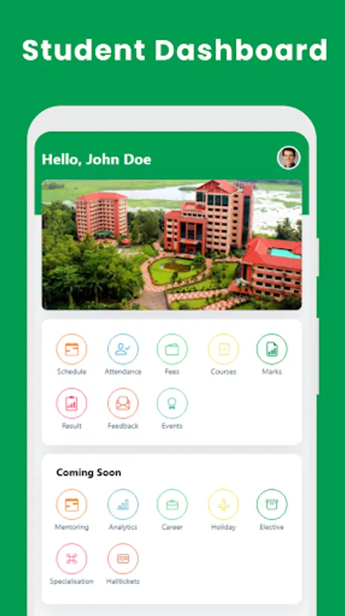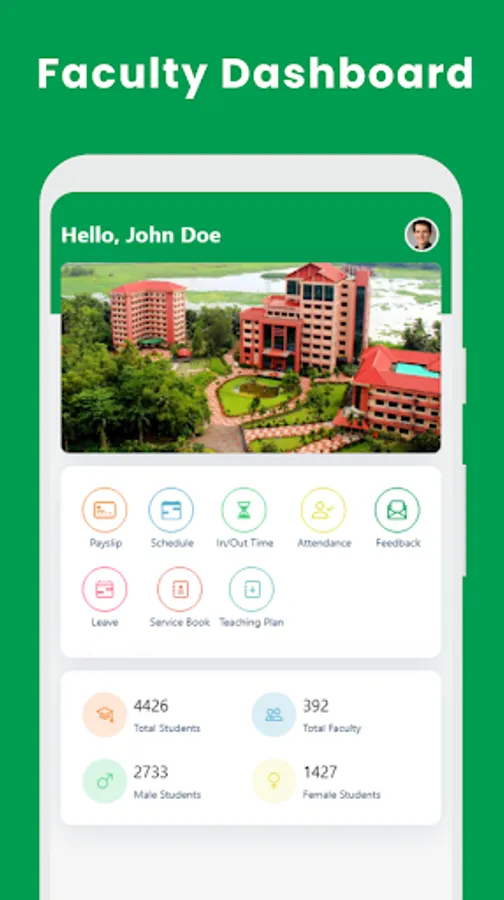 The students can check their results, fees status, and other information in the system. Further, faculty members can apply for leaves, maintain the service book, mark students’ attendance, and collect payslips on the application itself.