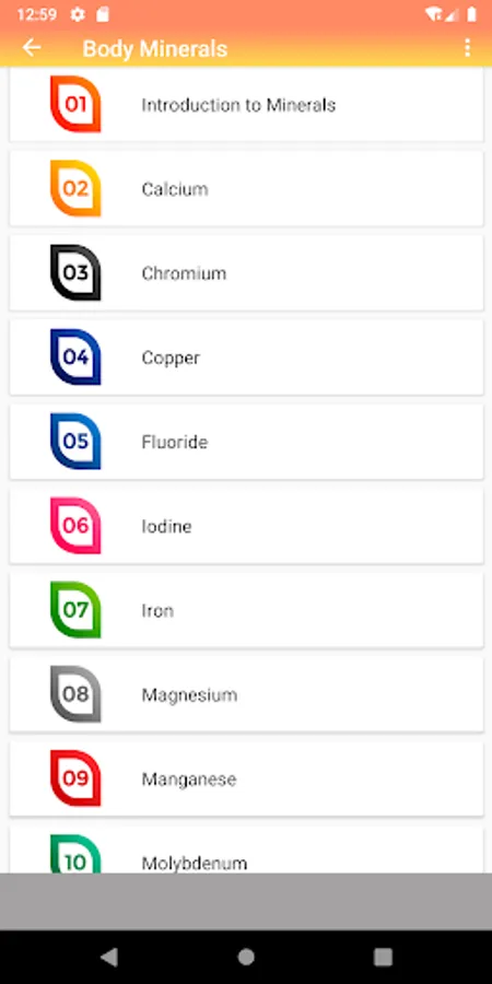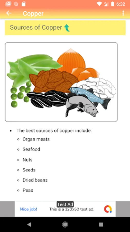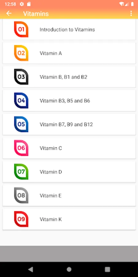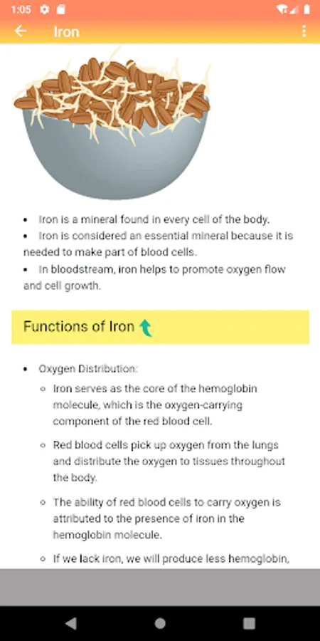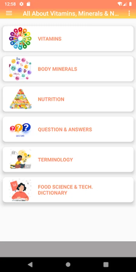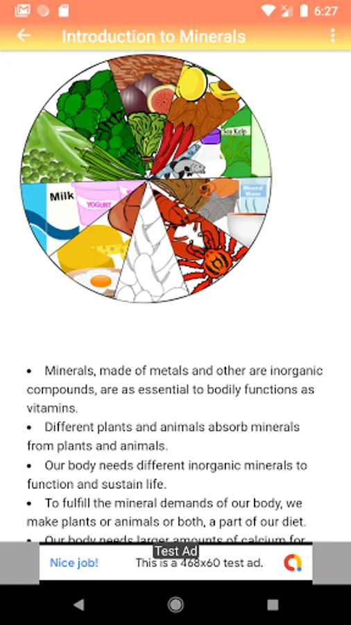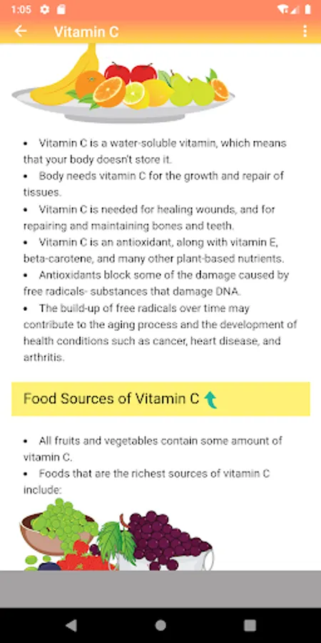 The "All About Vitamins, Minerals & Nutrition" android app provides wealth of information about the vitamins, body minerals and nutrition with a user friendly interface and decent graphic illustrations.