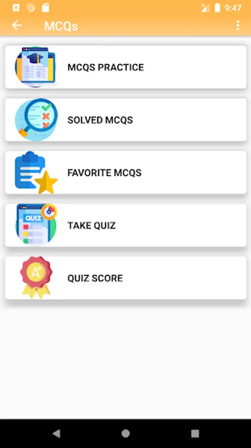 The MCQs Quiz is the iconic feature of the Data Structures & Algorithms app. It is a unique feature, different from other apps with different aspects. The MCQs Quiz feature helps to test user's skills in a real simulated environment. The MCQs Quiz feature provides total control to the user to configure it as per his/her choice such as number of mcqs, number of minutes, difficulty level, random mcqs, negative marking etc.