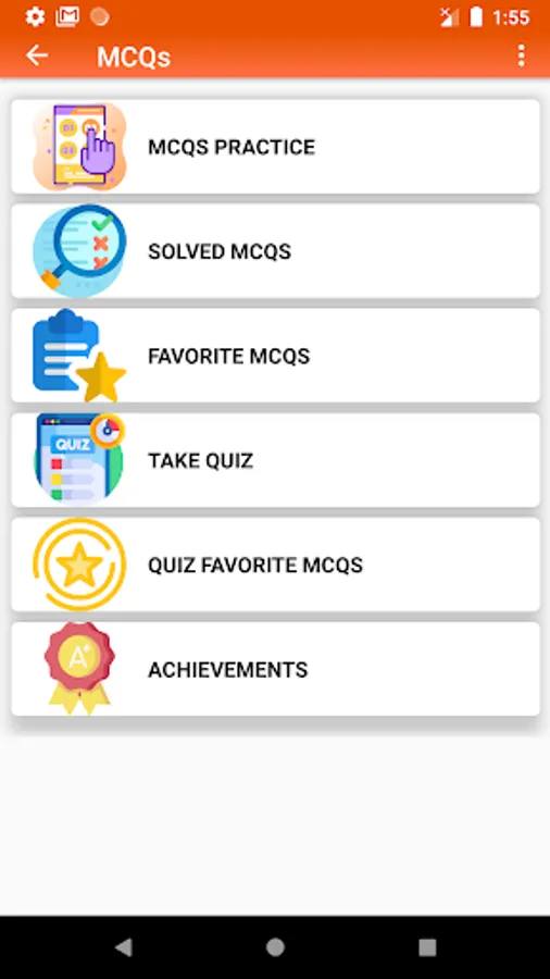 The MCQs Quiz is a unique feature, different from other apps with different aspects. The MCQs Quiz feature helps to test user's skills in a real simulated environment. The MCQs Quiz feature provides total control to the user to configure it as per his/her choice such as number of mcqs, number of minutes, difficulty level, random mcqs, negative marking etc.