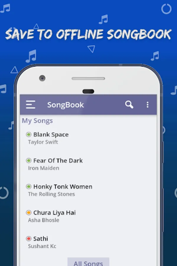 Lyrics and Chords of English Songs, Hindi/Bollywood Songs and Nepali Songs lyrics with Guitar and Ukulele chord diagrams. If you are seeking a lyrics for a song, learning a musical instrument (Guitar, Ukulele, Piano, Violin) or looking an app for a jam session , this is a perfect application for you.