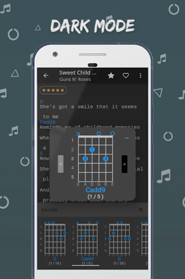 - Dark mode and chords color customization.