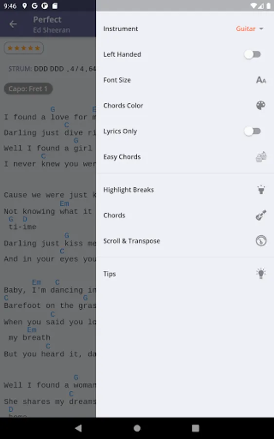 - Chord Transposer, Easy Chords option available