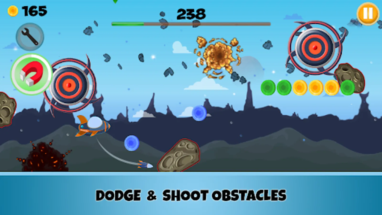 Shoot and dodge obstacles, set high scores and compete with your friends. Collect fun powerups, coins, dc while avoiding obstacles and setting your score.