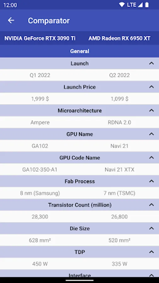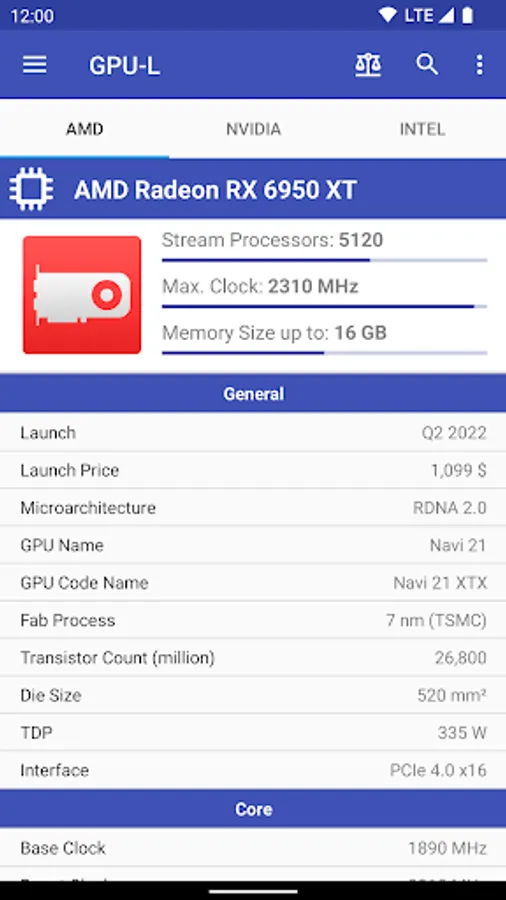 Do you want to mount a PC and do not know what graphics card to put it? Want to know the exact specifications of a particular graphics card? With GPU-L you can consult the specifications of all GPUs AMD, Intel and Nvidia and even those that have not yet been released. In addition you can compare up to 10 GPUs specification to specification.