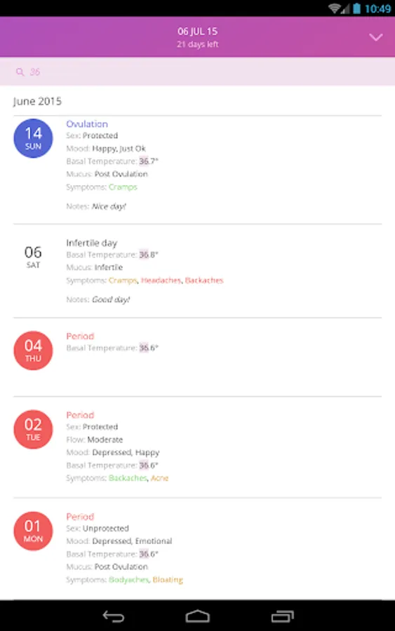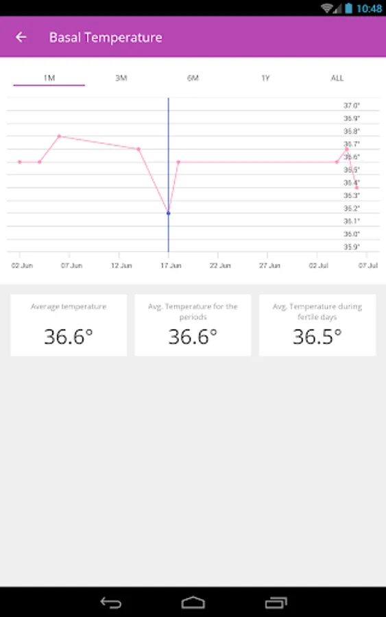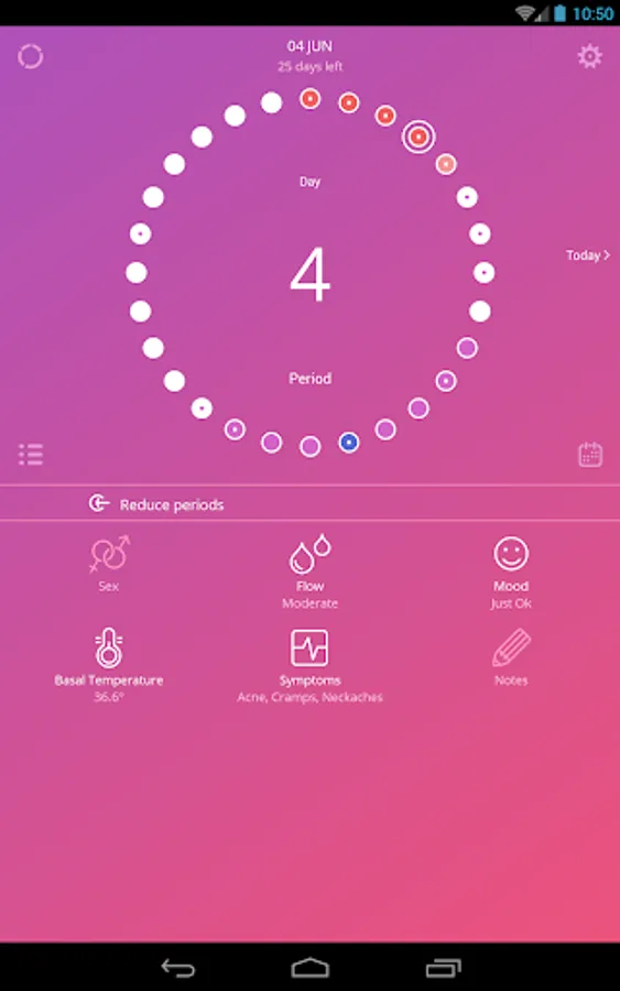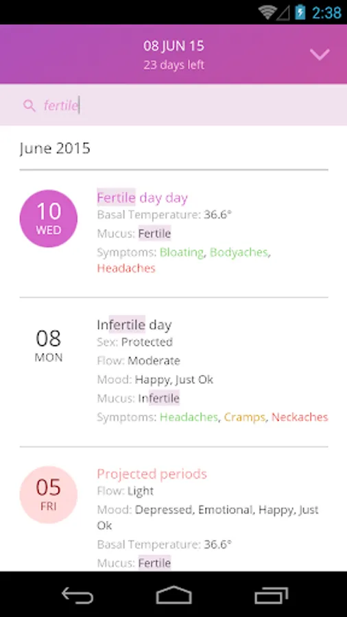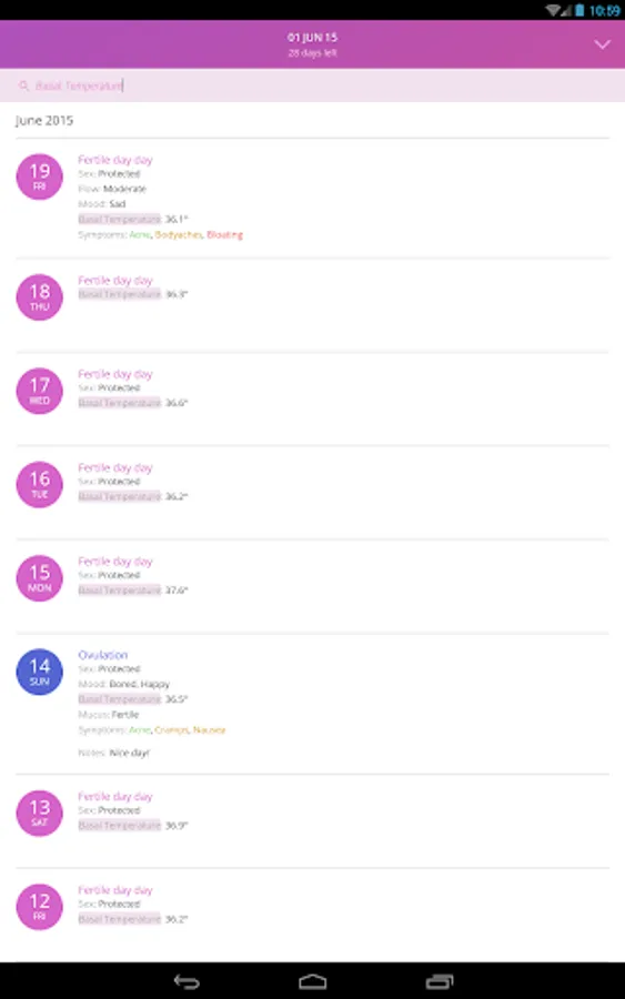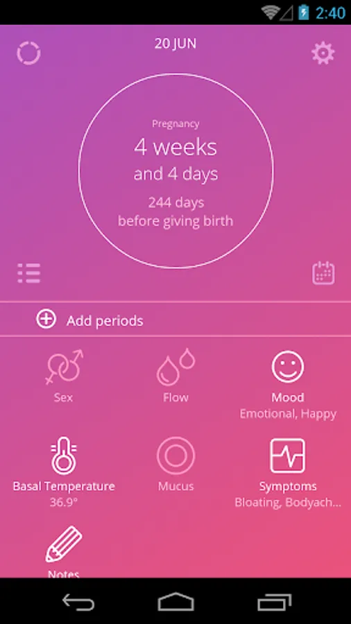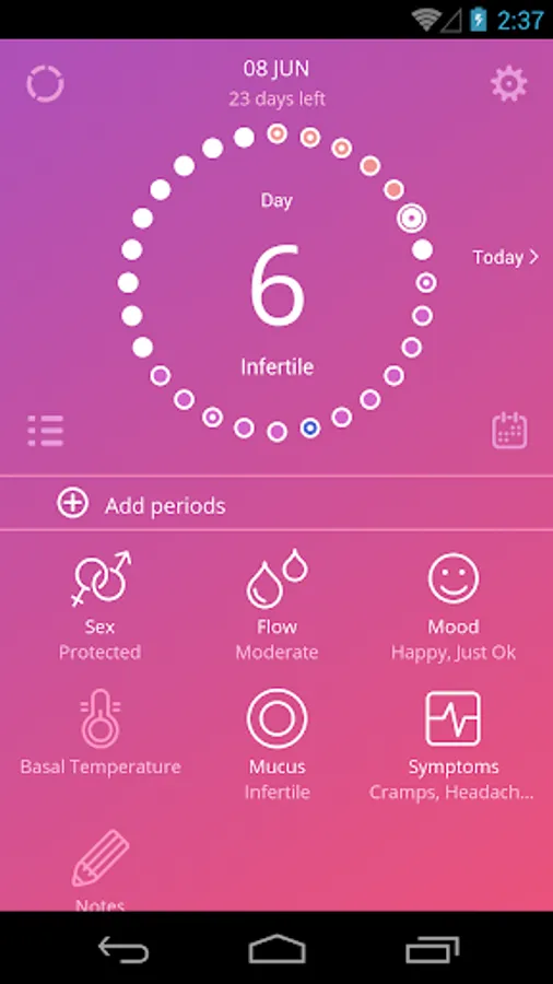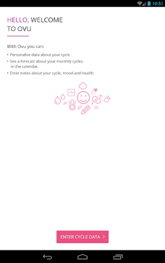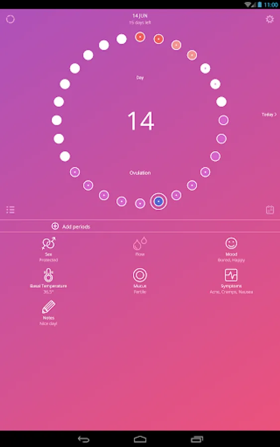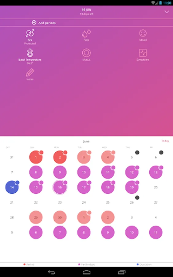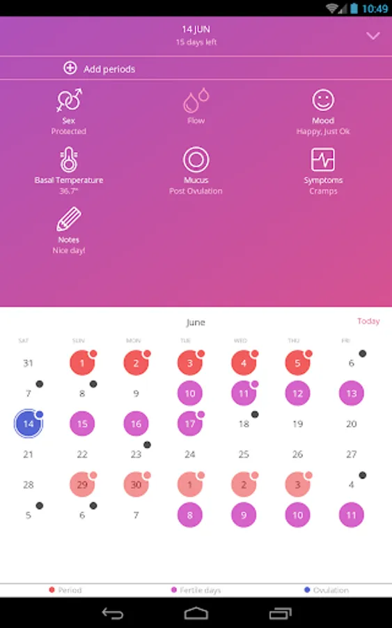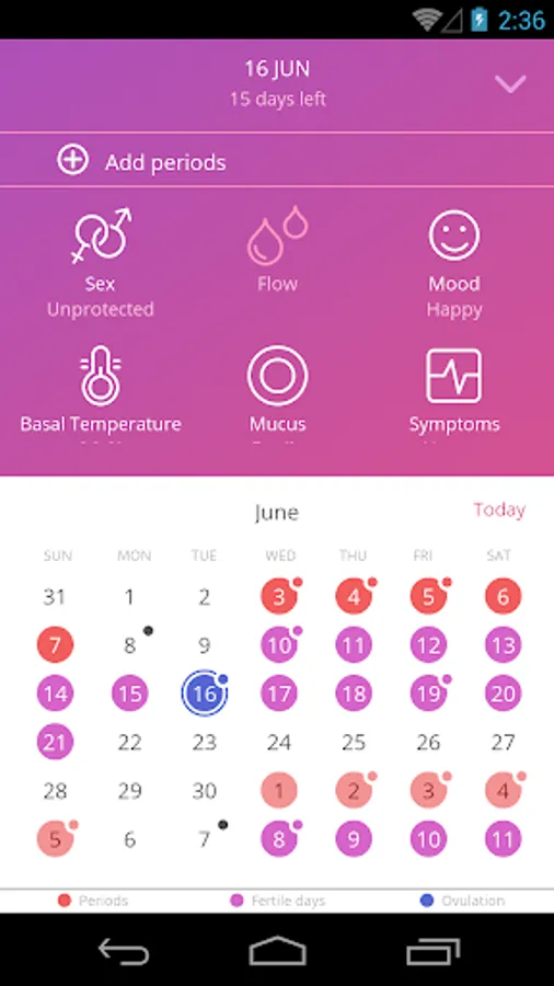 The app uses a calendar, temperature and cervical mucus method for tracking cycle in order to accurately trace the beginning of the fertile period and ovulation.
