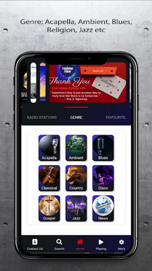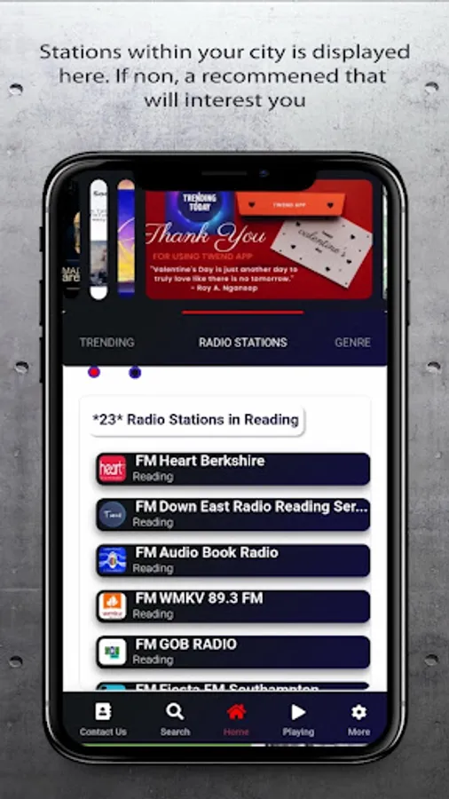 Twend App helps discover the Radio stations across the globe and categorizes the Genre (Acapella,Ambient, Blues, Classicals, Gospel, Islamic, Rock, Pop, Rap, Reggae, Soul, News, Sports and many more) for quick search. We are constantly adding new stations, the older ones are also being reviewed to give you the best listening experience. Users are able to save their favourite stations for later listening, record programs of choice. We have also provided means of registering your Internet Radio Station(s) for wider reach. Audio continues to play even on background when your phone goes to sleep.