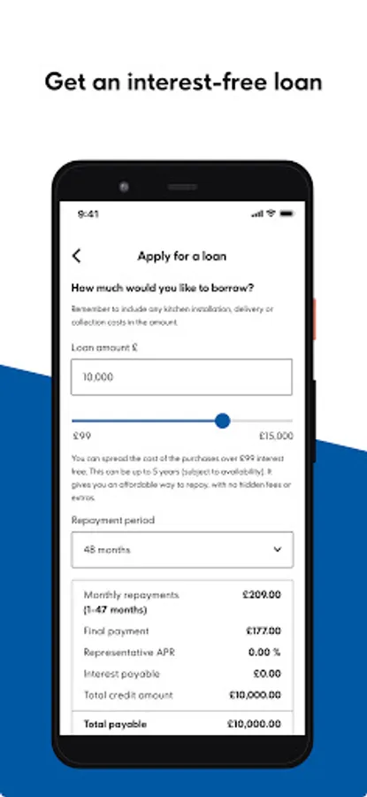 Use our calculator to pick a loan amount and repayment period from 3 to 48 months. Then, fill in a few details to see how much you can borrow interest-free (representative APR 0%). After that, it's just a few more steps to complete the full application for your loan.