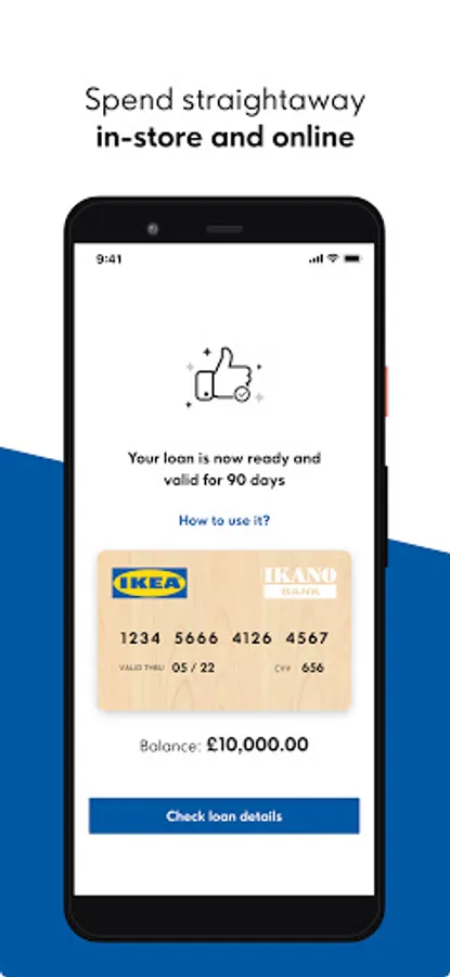 Our app makes it simple to use and manage your loan too. See your balance, all your transactions, and spend straightaway at IKEA using your virtual card.