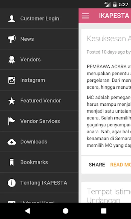 IKAPESTA stands for "Ikatan Pengusaha Jasa dan Perlengkapan Pesta". IKAPESTA is a community forum between service and party equipment entrepreneurs in Semarang. Service entrepreneurs referred to here are entrepreneurs whose products are to provide services and rental of equipment related to organizing a celebratory event. The celebration events in question include a wedding or fishing party, birthdays, building inaugurations, product launching, company gatherings, and other celebrations.