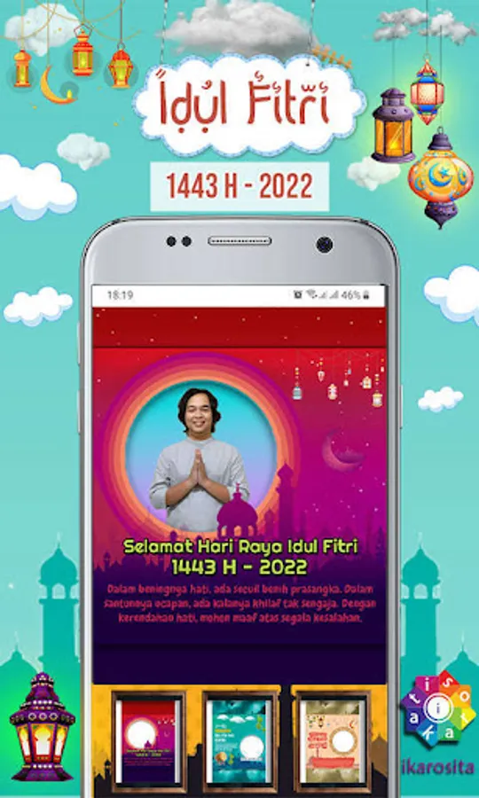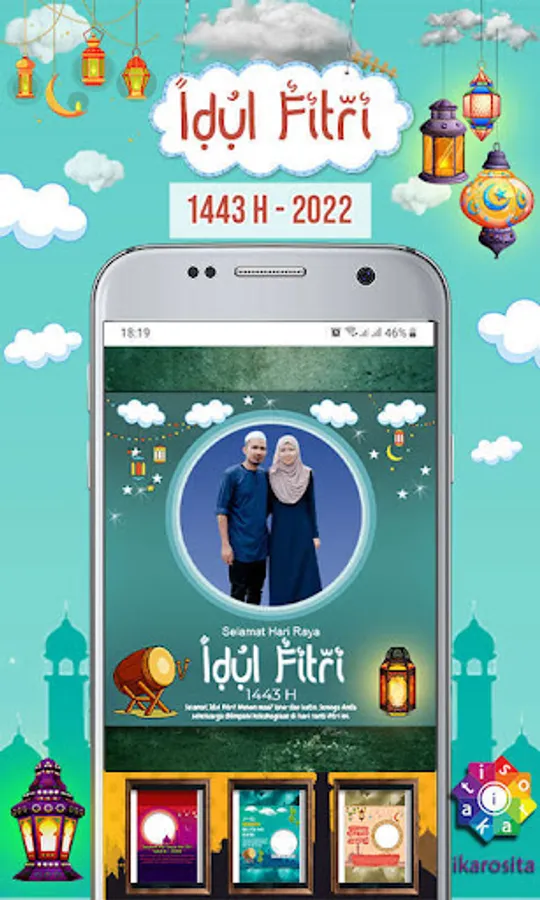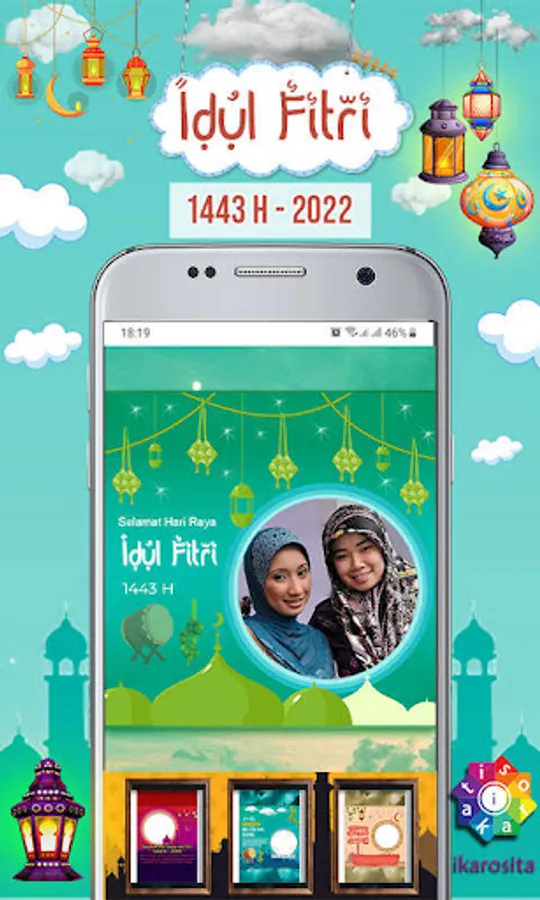 Well, the most fun thing about this application is that you can add stickers supporting various types of frames in this application. You can add lots of stickers for free. To look good, you can add it according to the theme in the frame very easily and fun. For example mosque stickers, diamonds, emoji, crescent moon, cool lanterns, glasses, crowns, etc.