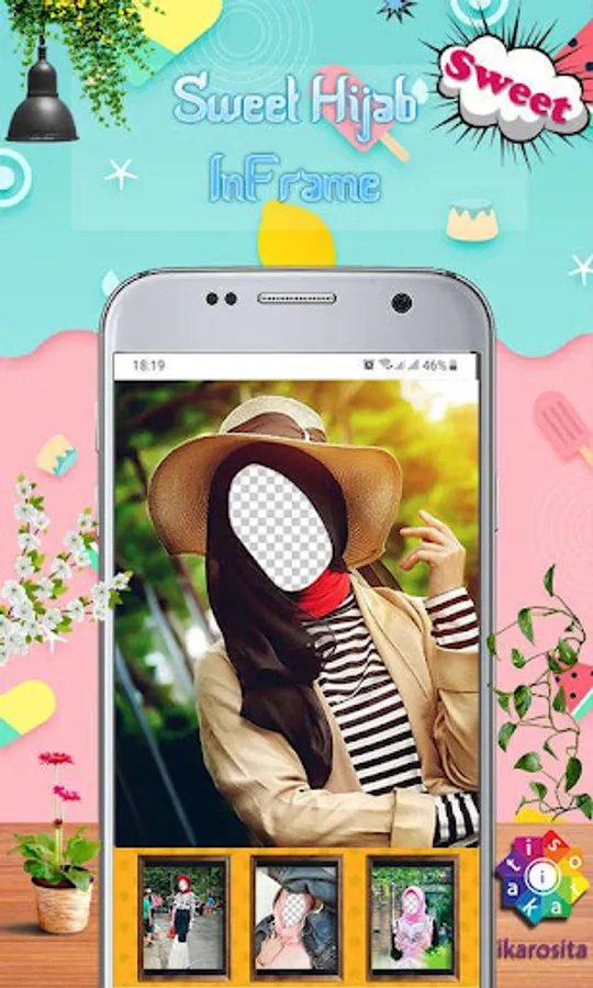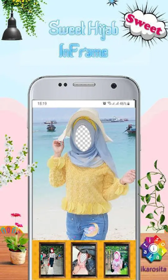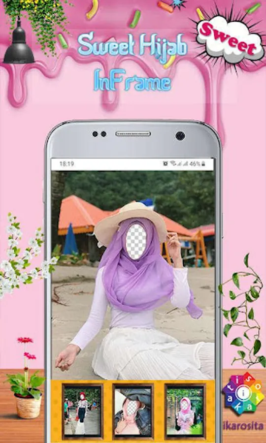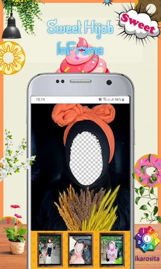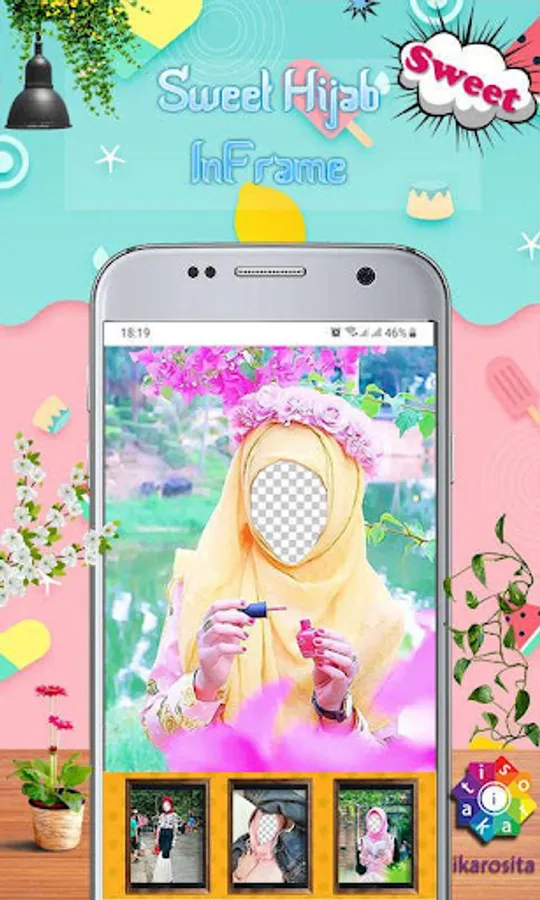 Sweet hijab In Frame is a photo editor with hijab frames, flip, stickers and also cool text.