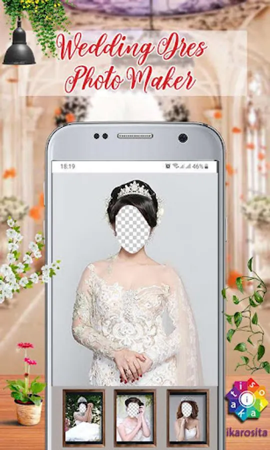 You can make this application as inspiration in determining the wedding dress that is suitable for you to wear on your wedding day. Try this photo frame app so it's like a photo booth that is very easy to choose a very beautiful dress.