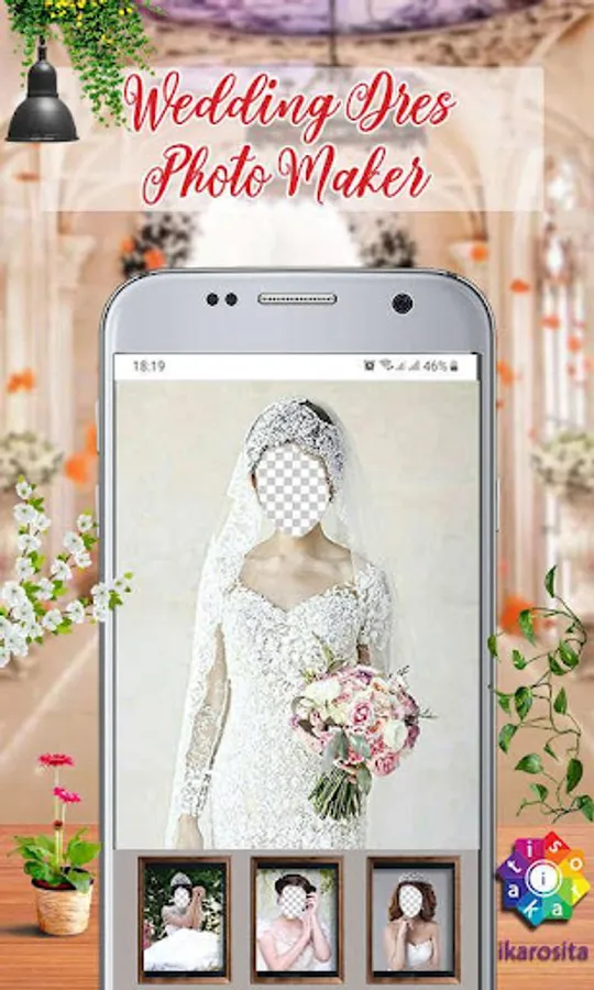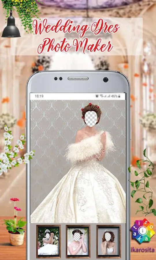 Wedding dress photo maker for you who like montage wedding photo editor. This application can make a photo of you wearing a wedding dress costume. Only by finding a suitable dress, then place it in the area provided. By using this application, you can determine various types of wedding dress models with variations in style that have a very good and elegant combination.