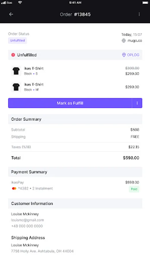 Handle all the processes needed to fulfill your orders from ikas mobile app. Shipping management has never been easier.