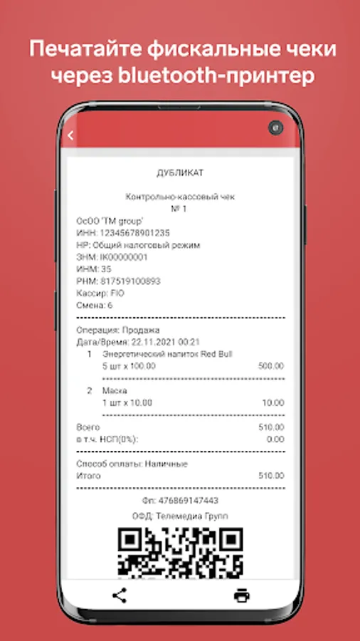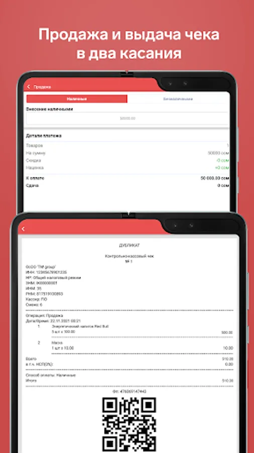 At such a checkout, you can sell any, even labeled goods, print cash receipts or send them electronically. Cash desks will be the optimal assistant for working online or offline. Use your phone's camera to scan the QR code and tagging code.