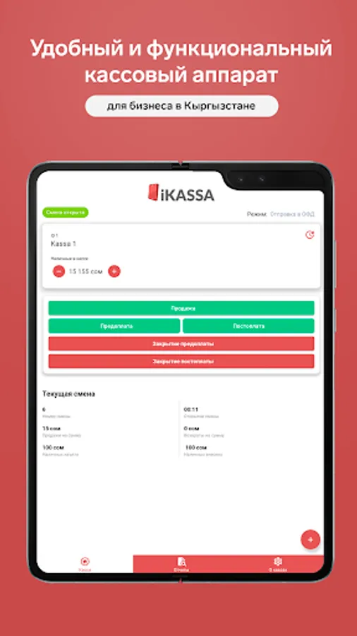 With the iKassa application, you will comply with the requirements of the Resolution of the Government of the Kyrgyz Republic dated June 24, 2020 No. 356. The program has all the necessary functions.
