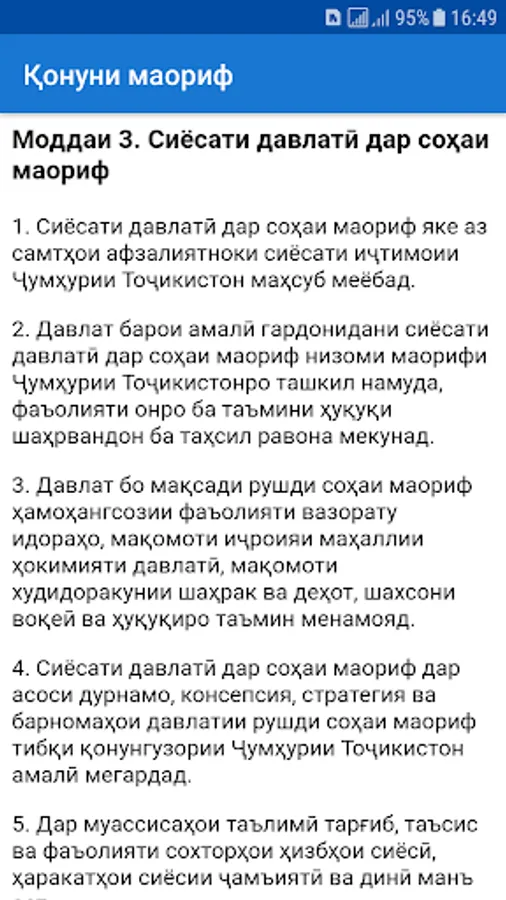 Nomi purrai barnoma - Konuni Vazorati maorif wa ilmi Ҷumҳurii Toҷikiston.