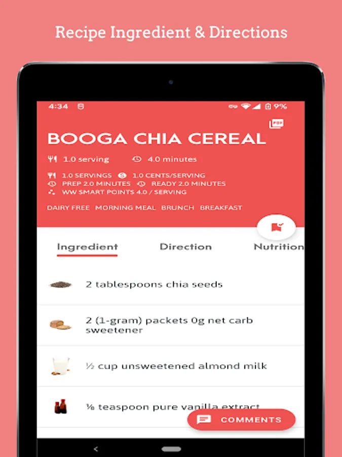 Including 100 recipes that are under 10 net carbs per serving, this app presents affordable, traditional, and—most importantly—recognizable recipes to guide you on your weight loss journey. All of the ingredients can be found at discount grocery stores—nothing fancy here! Within these relatable and unique recipes there are meals for picky eaters, fancier meals for guests, and some that are vegetarian “ish” (don’t contain meat, but may contain dairy or eggs). And with simple, stress-free instructions that require no cooking experience, there’s no excuse not to cook.
