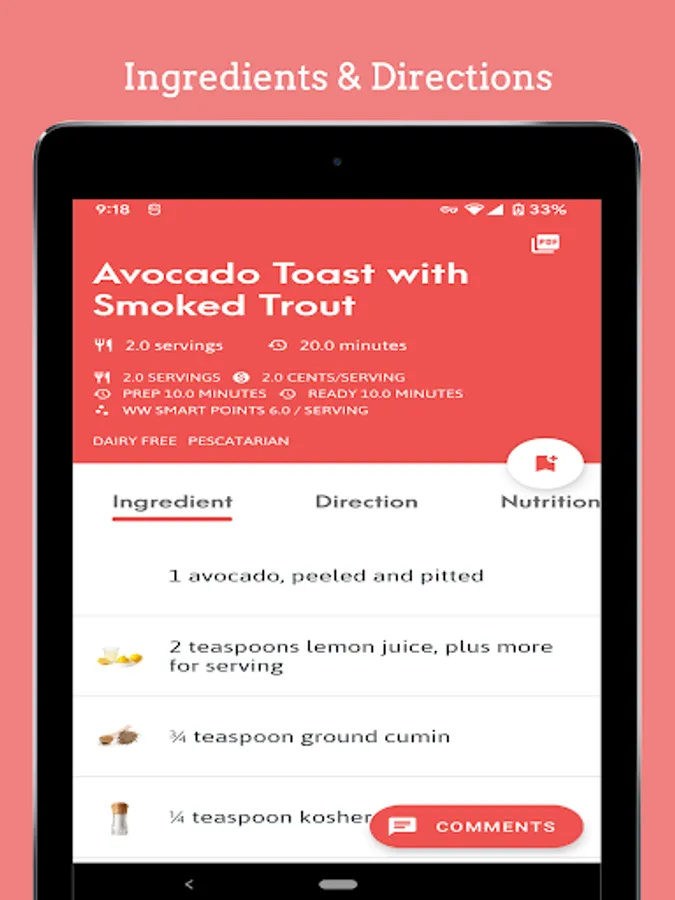 Handy recipe tips―Find information, shortcuts, and food swaps based on ingredient availability or flavor preferences.