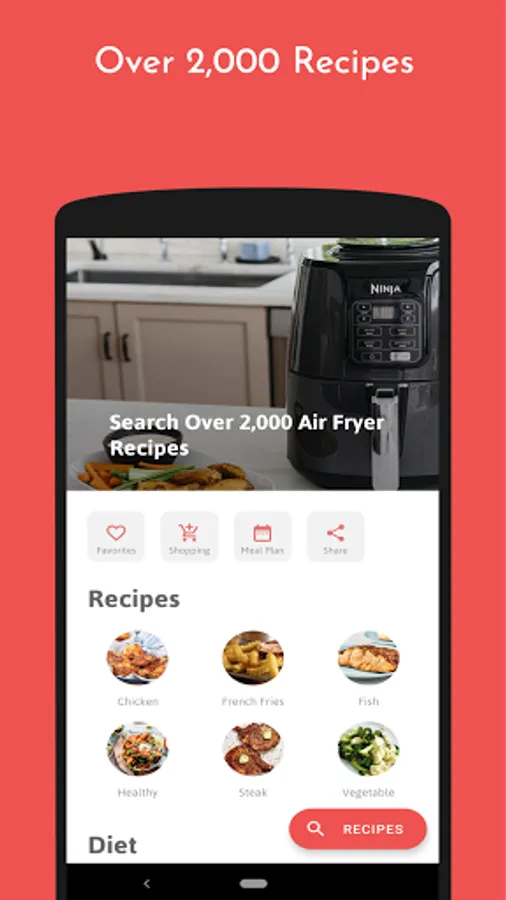 This air fryer cookbook app for beginners has plenty of content in the following categories: