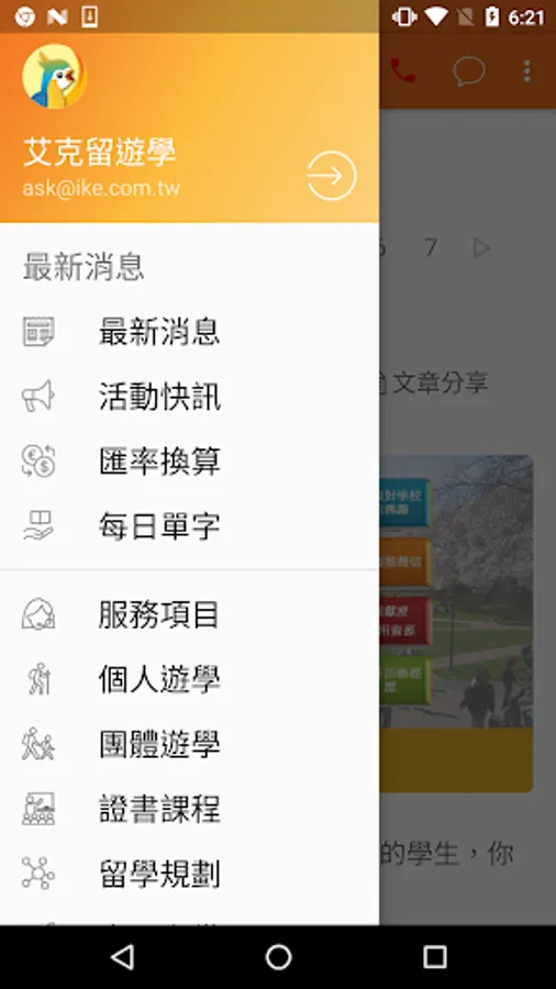 服務項目/個人遊學/團體遊學/證書課程/留學規劃/出國準備/中心介紹