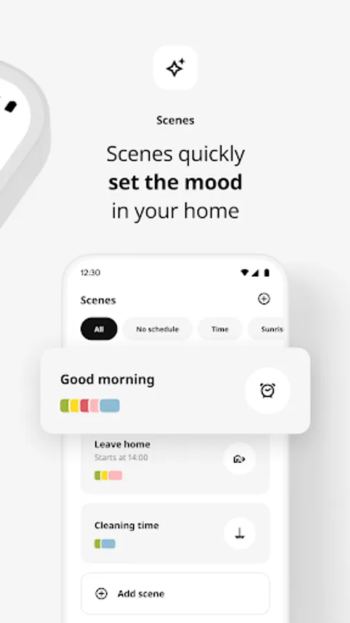 The magic happens when you combine two or more smart products from IKEA, tell them what to do in the app and save it as a 'Scene'.