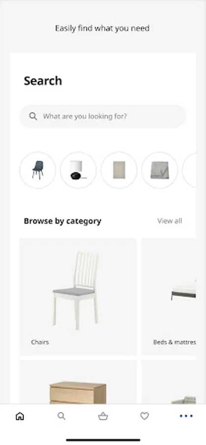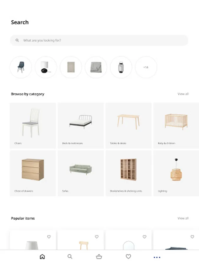 • Browse and search the IKEA range, then add products to a shopping cart and complete your purchase journey with a seamless checkout.