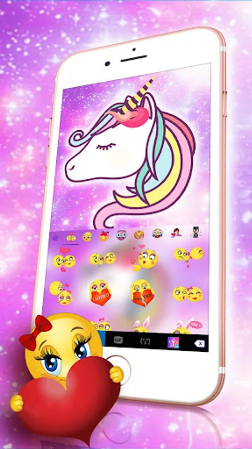 * Enjoy Adorable Galaxy Unicorn Keyboard Theme with cute emoji and delicate fonts.