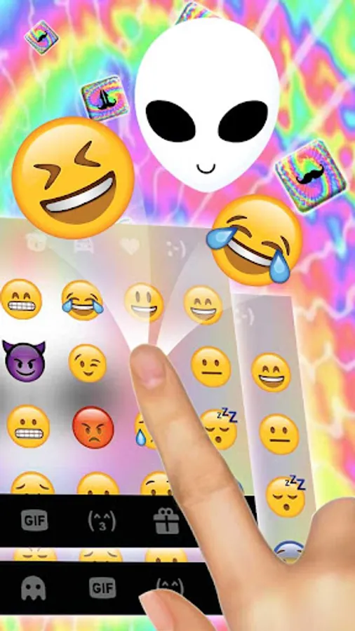 You can't miss the Alien Tie Dye Keyboard Theme with new fonts&emojis. It can make your phone trendy and more fashionable than before! Download and Apply this Alien Tie Dye theme right now !