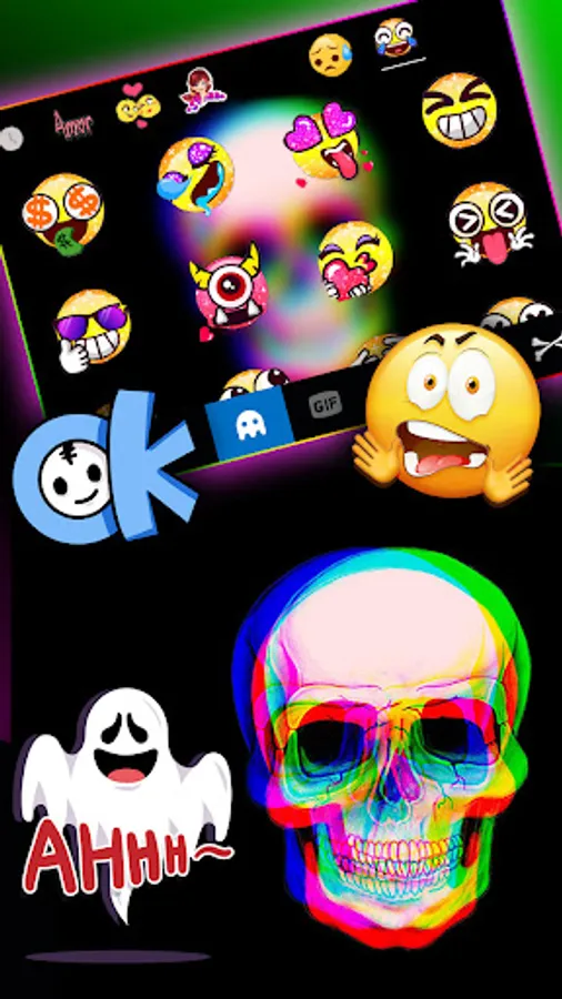😍Glitch Color Skull Keyboard is a smart & customized keyboard for android. It comes with the stylish keyboard background, fonts,emojis and stickers!