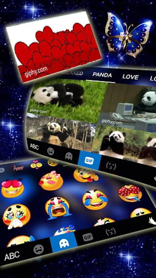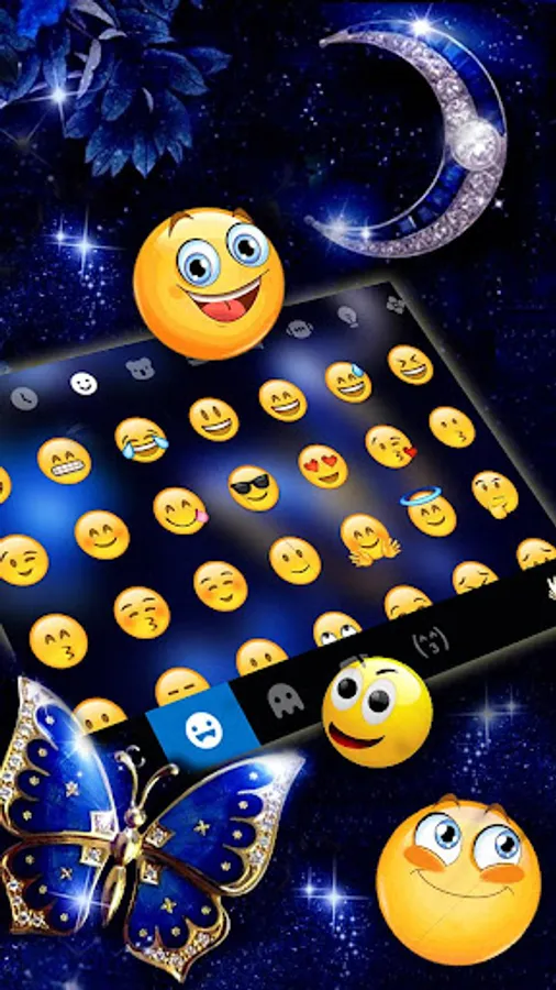 If you love funny emojis and different keyboard color, wallpaper, sounds, fonts, and layout, the Blue Fancy Butterfly theme is your cup of tea.
