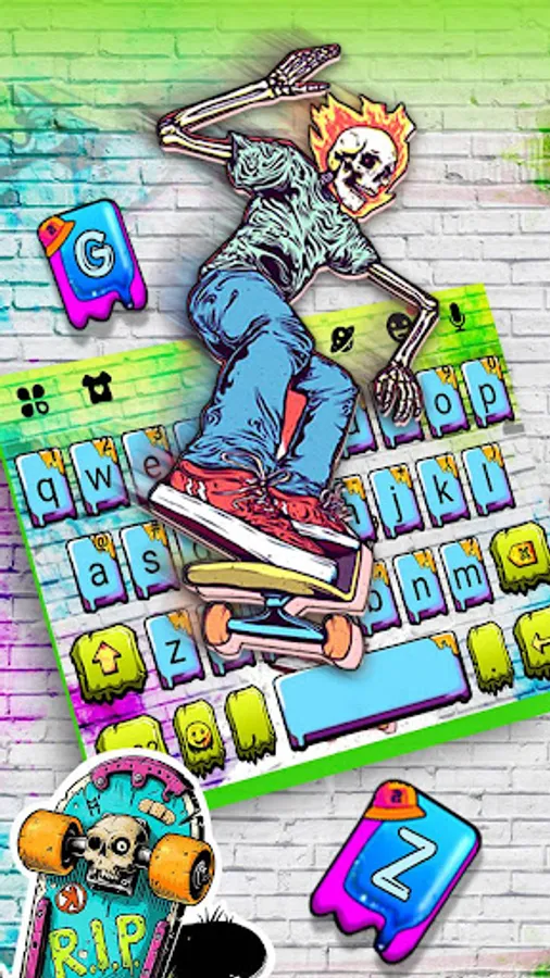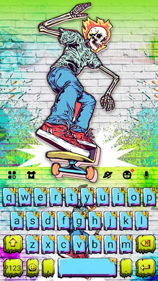 New Free Cool Skate Skull Graffiti keyboard theme will give really new look & feel to your keyboard & text input, and make your Android device keyboard cool, cute and unique.