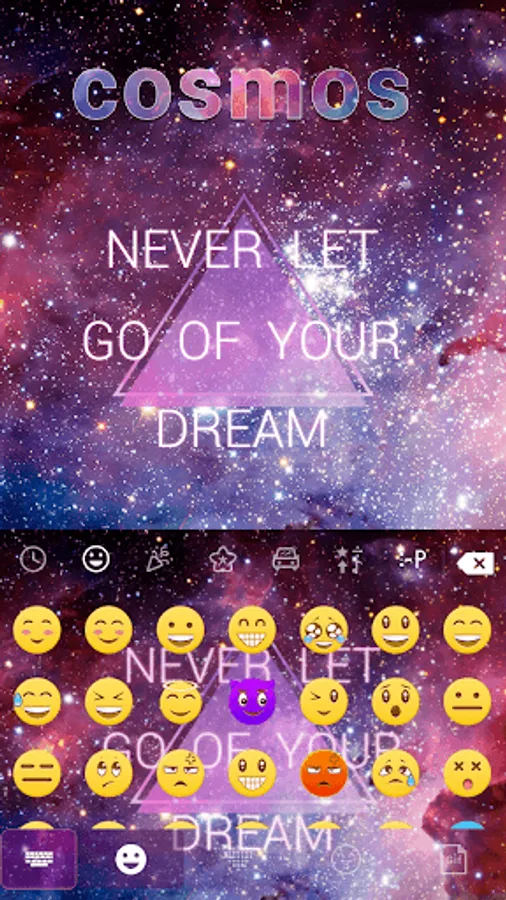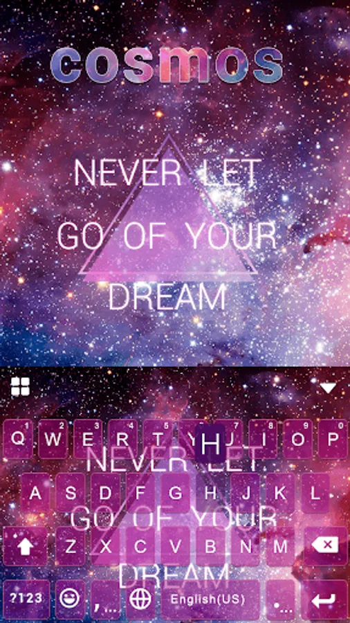 Add cosmos Keyboard Theme in your phone! Let cosmos Keyboard Theme show its unique charm, your phone can be really different with cosmos Keyboard Theme. Feeling attractive now? Install cosmos Keyboard Theme and apply it now!