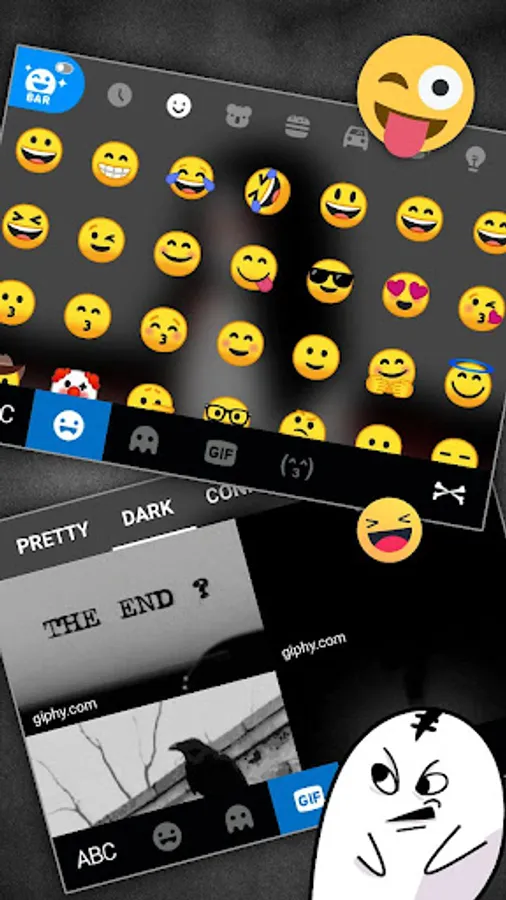 • Input thousands of Emojis, Dictionaries, GIFs, Emoticons and stickers anywhere conveniently.