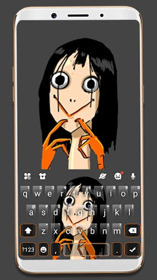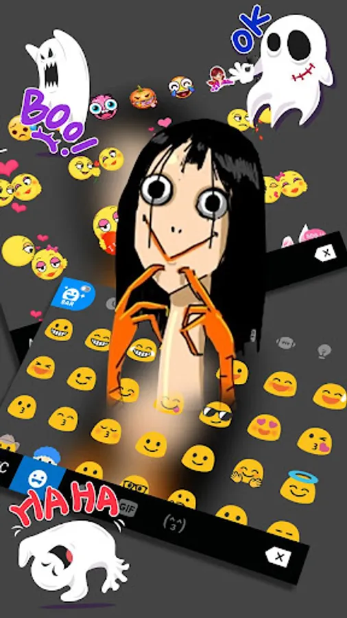 Creepy Momo 2 Theme gives you the best keyboard background,fonts and emojis for free!