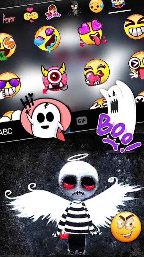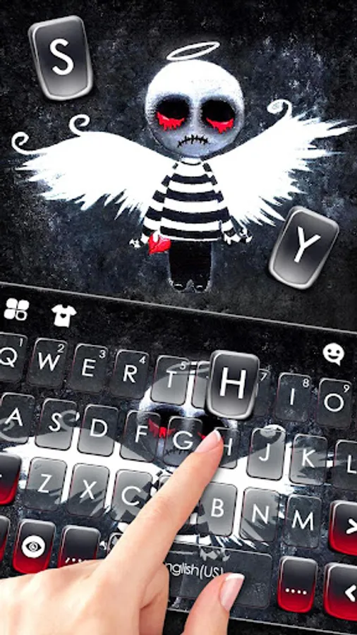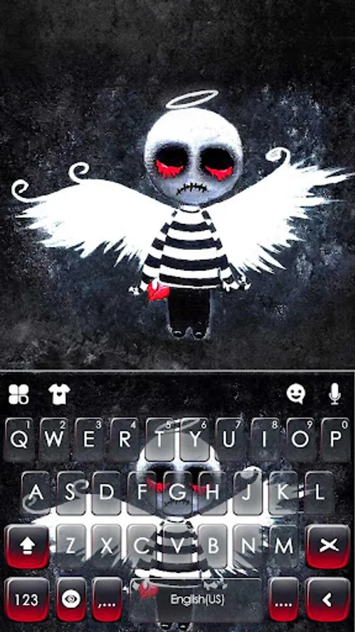 Creepy Voodoo Doll Theme gives you the best keyboard background,fonts and emojis for free!
